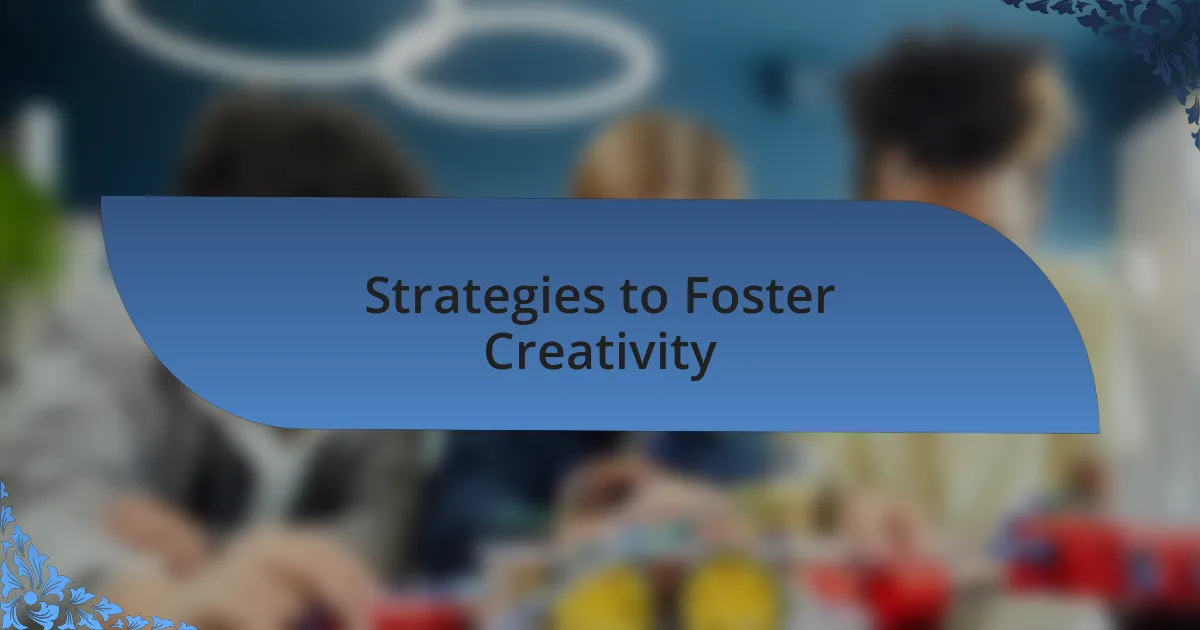One powerful strategy I’ve implemented to foster creativity is encouraging regular feedback loops within the team. I remember organizing quick daily stand-up meetings where everyone shared their progress and challenges. This open dialogue created a safe space for ideas to bounce around. Have you ever felt the thrill when a colleague builds on your thought? It’s a unique energy that propels innovation forward.