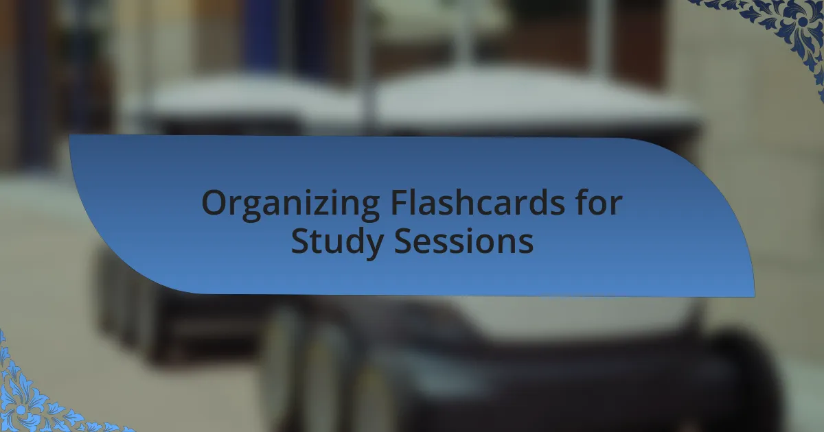Organizing flashcards effectively can transform my study sessions into focused and productive experiences. I categorize my cards by topics, such as programming languages, sensors, or mechanical components. This method allows me to tackle one area at a time, making the study process feel less chaotic and more structured. Have you ever tried sorting your materials this way? It really helps in building confidence as I master each category.