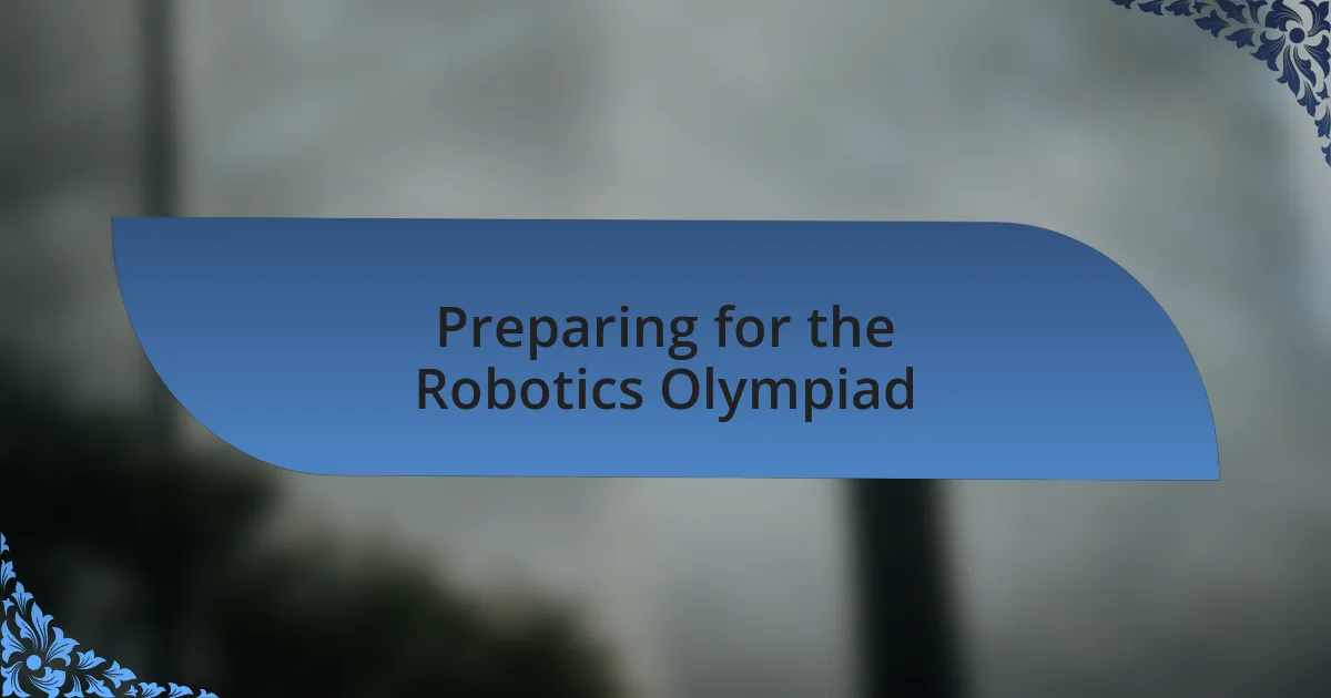 Preparing for the Robotics Olympiad involves a mix of strategic planning and hands-on practice. I vividly recall sitting down with my team to dissect the competition’s past challenges, identifying patterns in the problems presented. Have you ever felt that rush of excitement when you realize you’ve pinpointed a recurring theme? It energizes the entire group and fuels our collective determination.