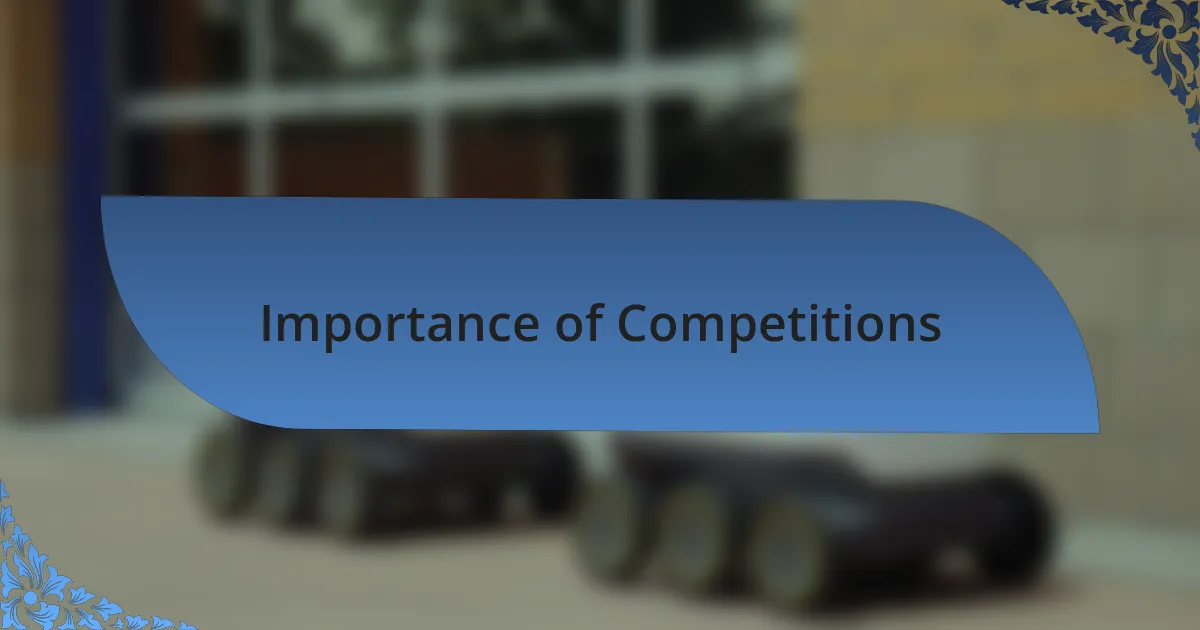 Competitions like the Robotics Olympiad serve as vital platforms for personal growth and skill development. I recall one competition where I faced off against some of the best young minds in robotics. The pressure was palpable, but as I navigated through the complexities of programming and design, I realized this environment pushed me to enhance my problem-solving skills far beyond what I thought was possible. Wasn’t that exhilarating?